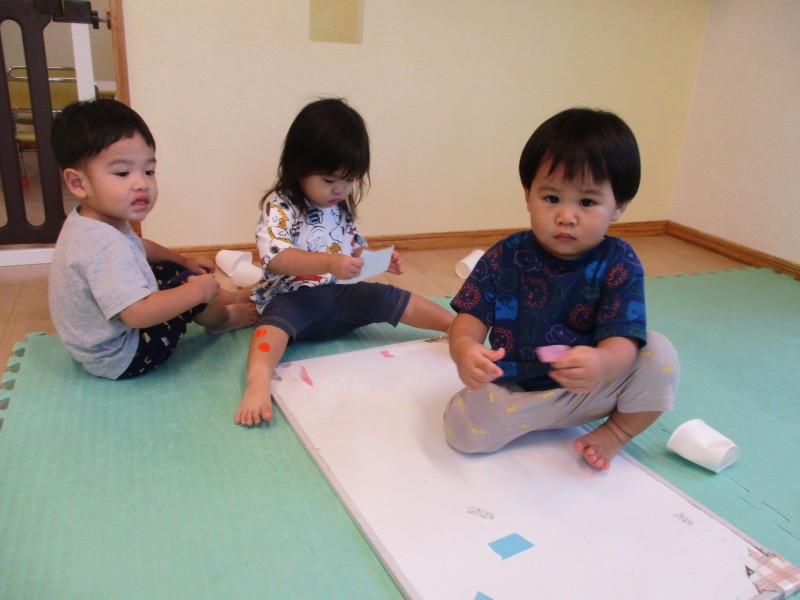 重ねたり、並べたり思いおもいに楽しんでいました😄