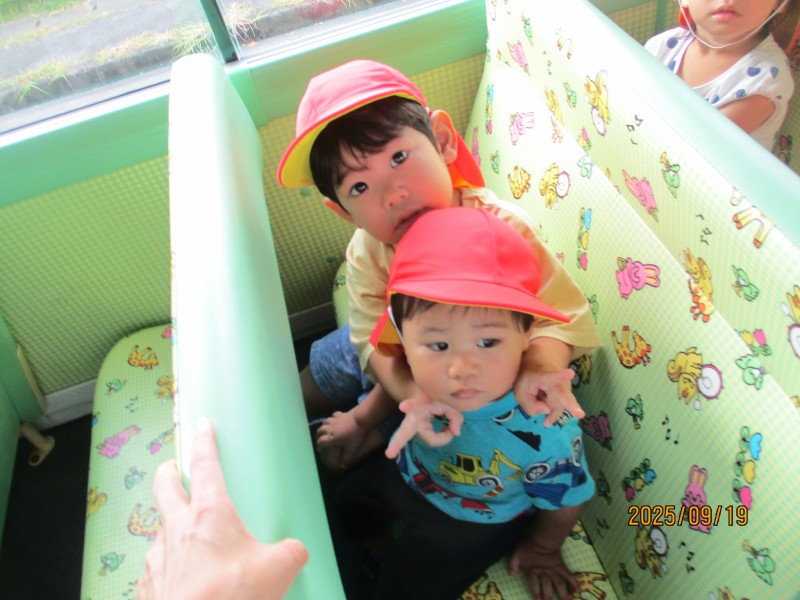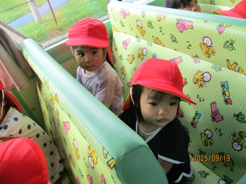 大きなバスもしっかり手すりを掴み上手に乗れましたbus