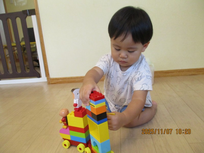 ブロック遊びも上手になり、お家や車など色々な物を作って遊んでいます![]()