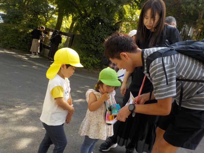 集合場所に集まる子ども達は、お家の人と一緒ということもあり、いつも以上に、わくわくウキウキの表情を見せてくれました😊💕
