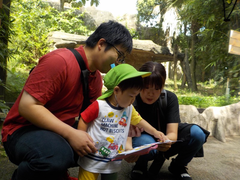 動物園の中にいる先生たちを見つけ、クイズをしながら5つのシールをゲットし、ゴールで全て集まると、お土産がもらえるというものです🌟