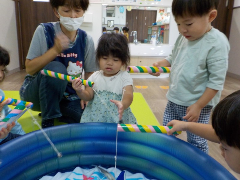 釣り竿を使って、カラフルなお魚さんを一生懸命に釣っていました🎵