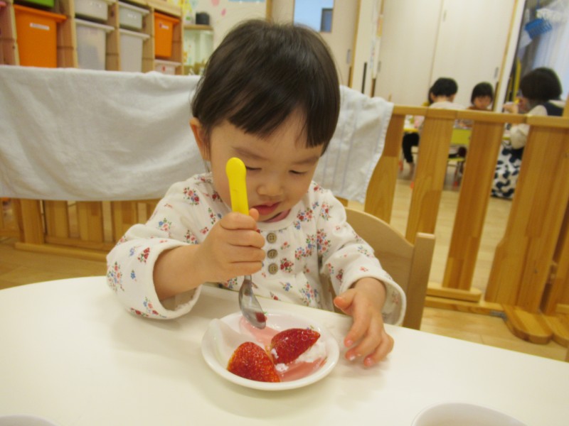 今日の主役のお友達です!大きないちごに大喜びです![]()