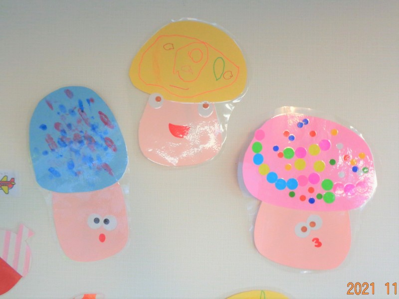 その他 日付:2021.11.10 🎨 11月の作品 秋ですね 🍄 子ども達の個性的な作品をご覧ください。🎨 0歳児クラス。「アリさんが好きな果物は何かな。」🍎🍇 1歳児クラス。「もみじの葉っぱは、きれいだね。」 2歳児くらす。「きのこがいっぱい。小人さんもいるかな。」🍄 12月も素敵な作品を紹介します。お楽しみに
