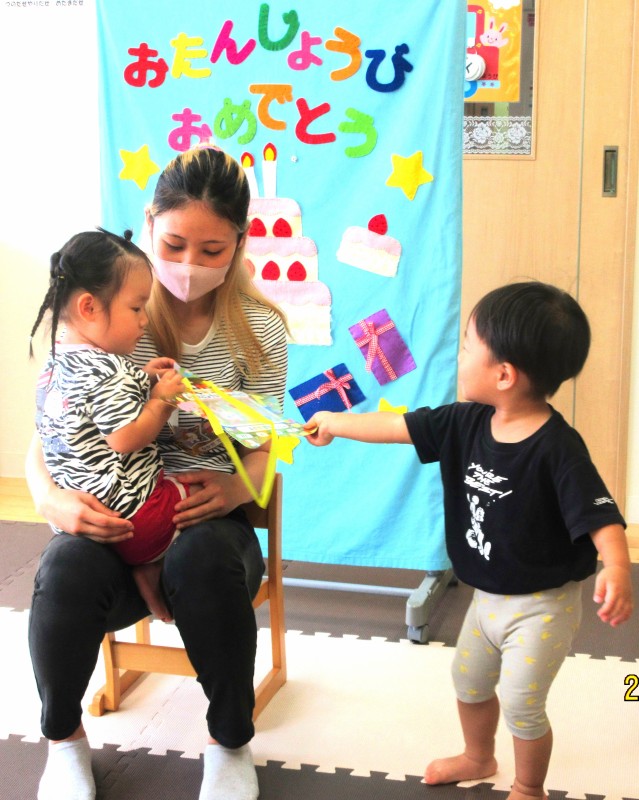 子ども達は、七夕集会で見る、聞く、触る、振る、くぐる等の体験をしました。