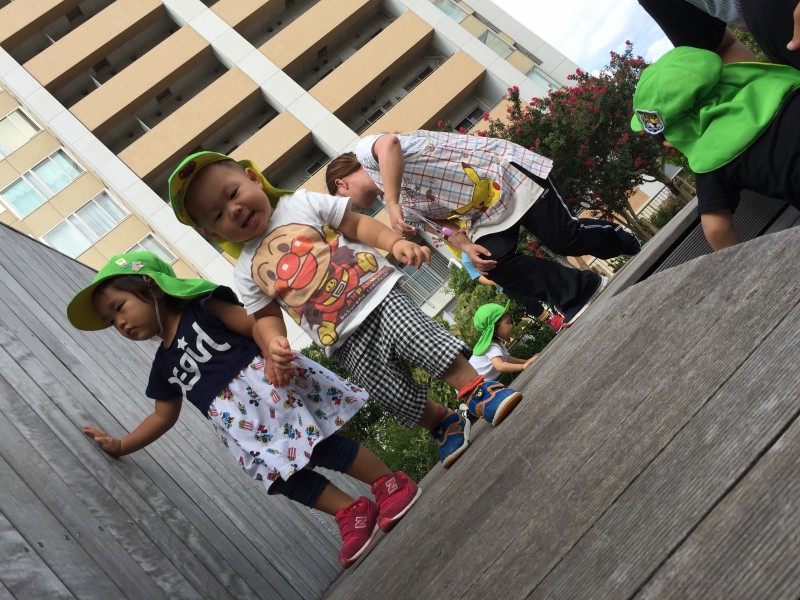 他にもくねくねの道を先生と手を繋いで歩いたり、走ってみたり🎵