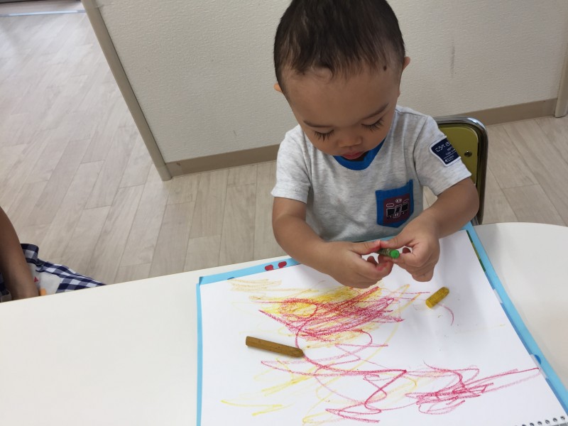 りす組(1歳児) 日付:2019.09.06 お絵描き☆ りす組のお友だちみんなでお絵描きをして遊びました😊💗 スケッチブックを先生が持ってくると 「なに~」 「きゃ~~」 「お絵描きする~! ちょうだい~」と大興奮!!😏 好きな色のクレヨンを持って上手にぐるぐる~~☆彡 久しぶりにお絵描きをしたので みんな好きなものを真剣に描いています 「アンパンマン~」 「わんわん!!」 など描いているものをたくさん教えてくれました💖 みんなでお絵描き楽しかったね😃