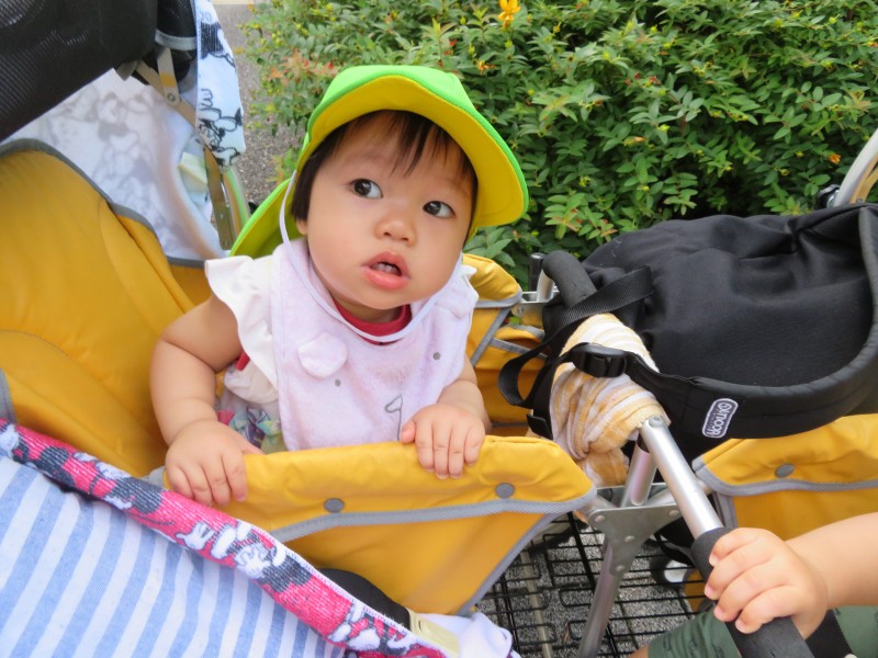 全く嫌がらずにしっかりとお散歩車に乗ることができました![]()
