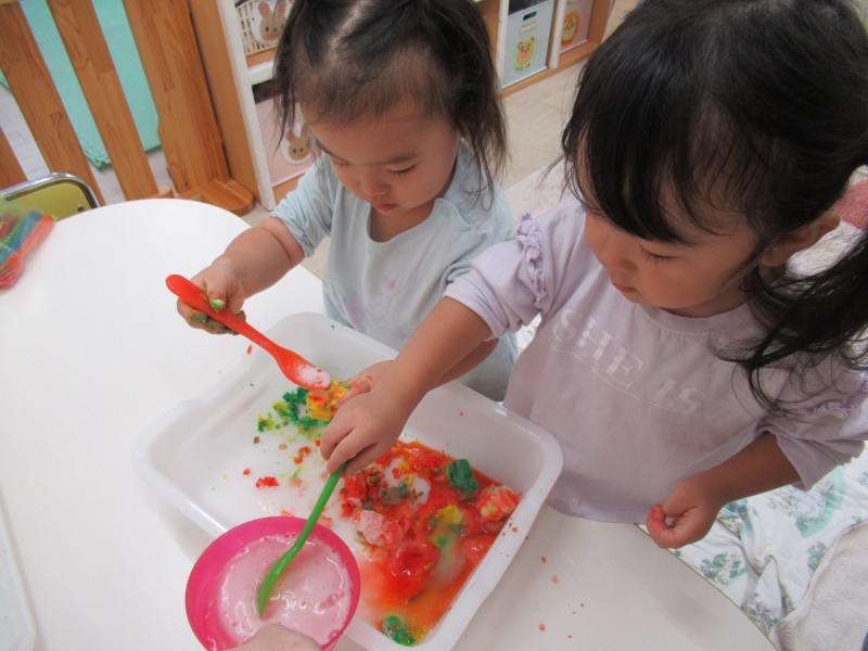 1日で2つの感触遊びを楽しめて、子どもたちもすごく嬉しそうにしていました
