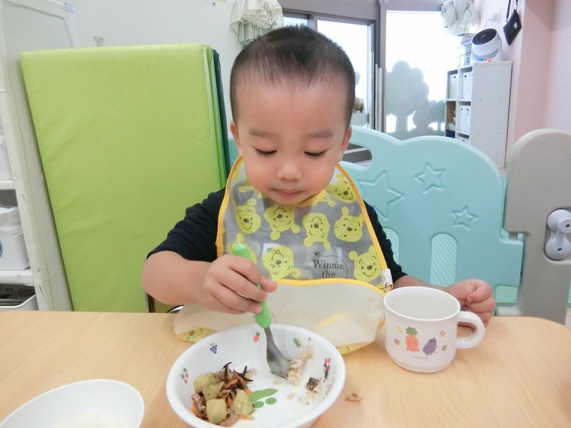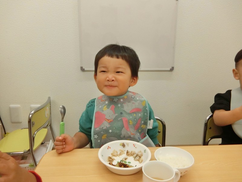 保育士が近くにいるのか、後ろを何度も確認![]()