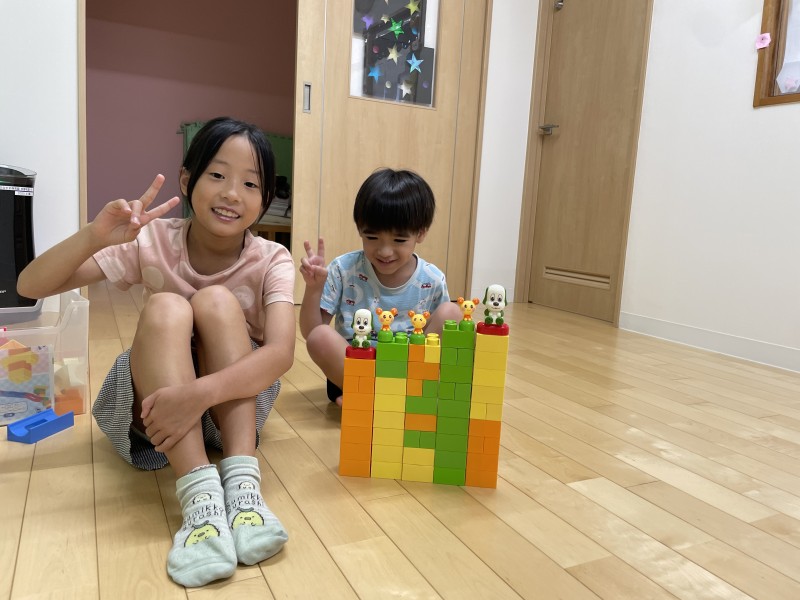 みんな風邪症状も落ち着いてきており、2日間一緒に塗り絵やブロックでたくさん遊んだのでとても仲良くなっていましたよ