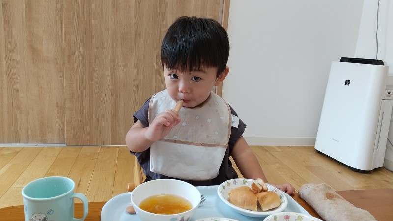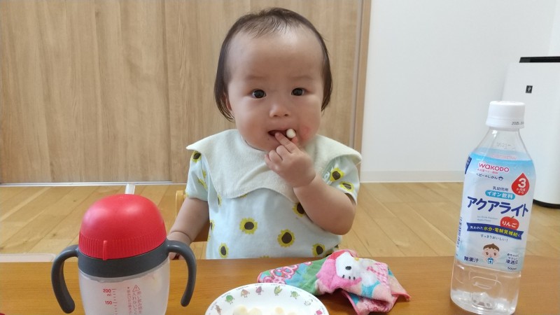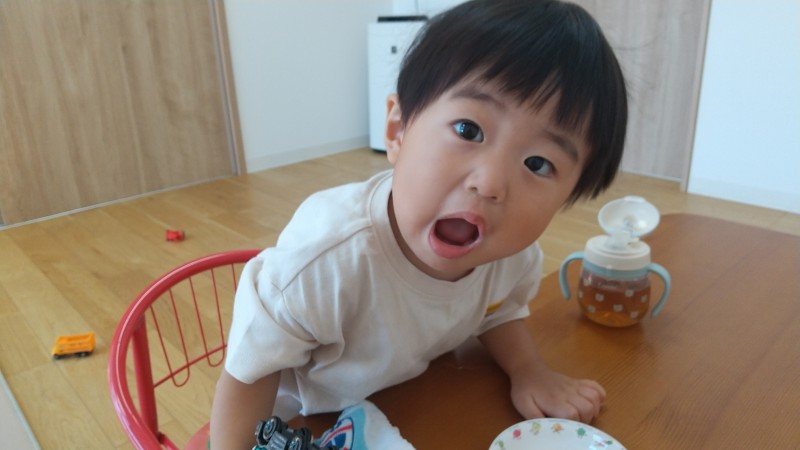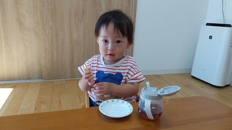 おやつを食べている時においしそうだなぁと声をかけると、「あ~ん!」と分けてくれようとする優しいCくんでしたlovely