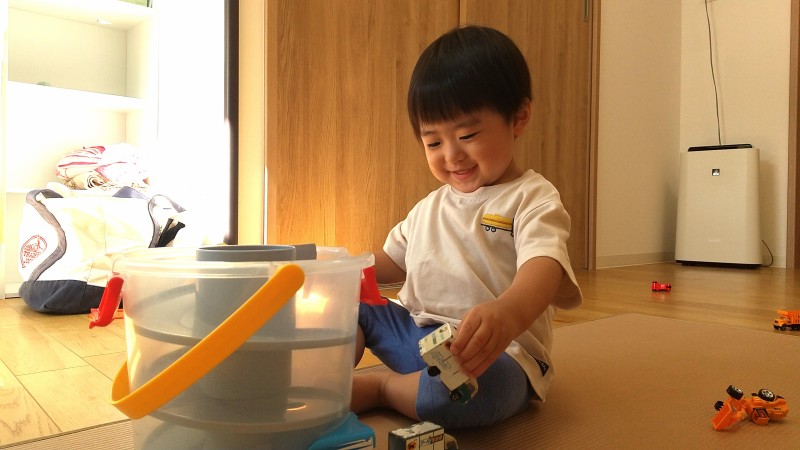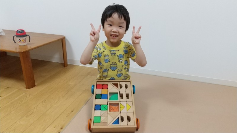 積み木を片付ける際は、配置やバランスを考え箱にきれいに並べてくれましたよ!