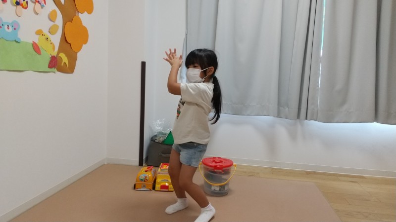 グーチョキパーでなにつくろうの歌を歌うと、両腕を振ってノリノリでリズムをとってくれたSくんでしたlovely
