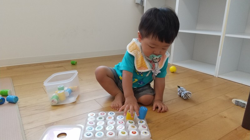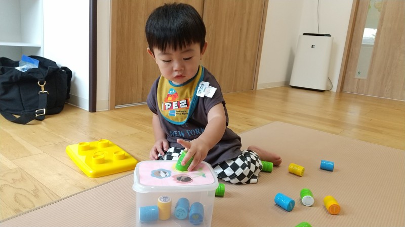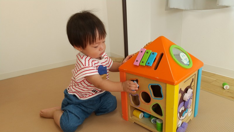 初めての利用で泣いてしまいましたが、アンパンマンの知育玩具を見ると泣きやみ木琴をコンコン鳴らし遊び始めましたconfident