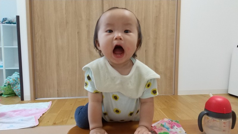病児室内をはいはいやつかまり立ち、つたい歩きでニコニコと探索し、その後はぐっすりと眠っていたNくんでしたshine