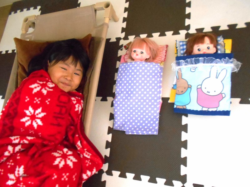 お昼寝の時は、メルちゃんたちと一緒に眠りました🛏