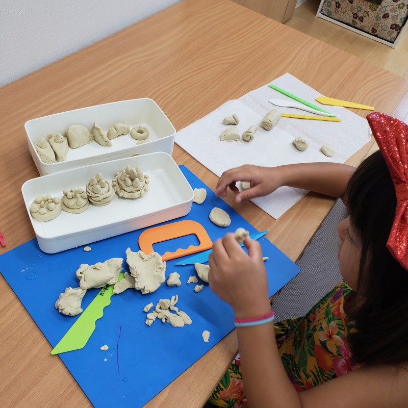 粘土でケーキ屋さんをして遊んだり・・・