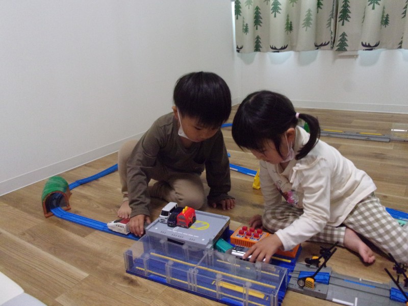 この日が初対面だった二人ですが、すぐに仲良くなり、一緒に線路を作りながら新幹線を走らせていました⭐️