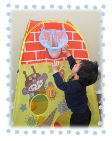 中に入ってお家ごっこや、ボールを入れて遊んでいます