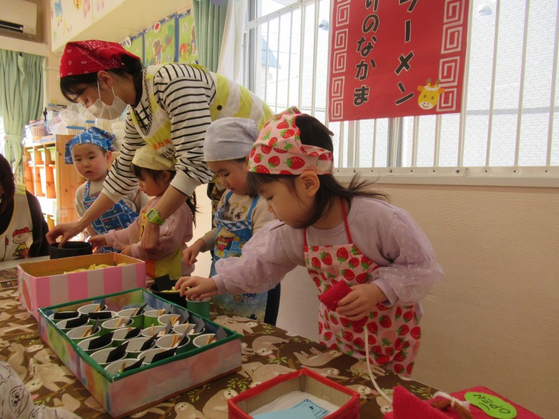 宮城県 仙台市 宮城野区 企業主導型 保育園 ごっこ遊び ラーメン ドーナツ 綿あめ アクセサリー サイエンス