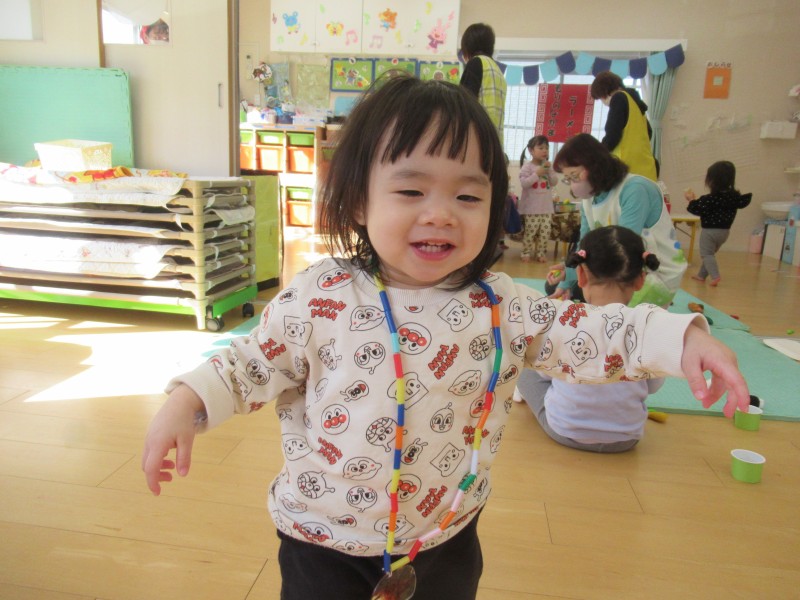 お店で買ったネックレスをさっそく身に着けて遊びました![]()