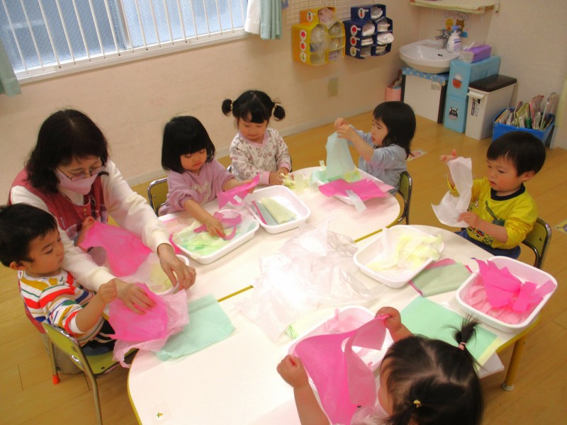 製作をして過ごします❣この日は花紙を破いてしゃかしゃか風船を作って遊びました🎈