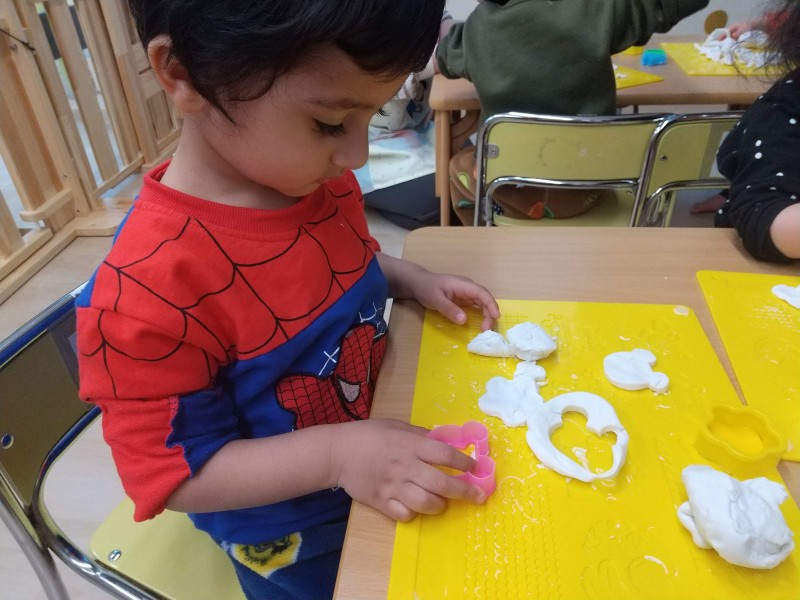 普段の食事で出てくる形やスーパーやお店で目にするものとの違いを、つまんだり割いて手指で自由に確かめていきます。