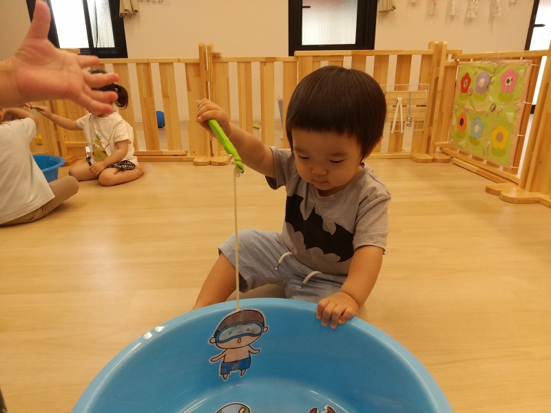 魚釣りゲームでは、透明なお魚さんにシールをペタペタ😊