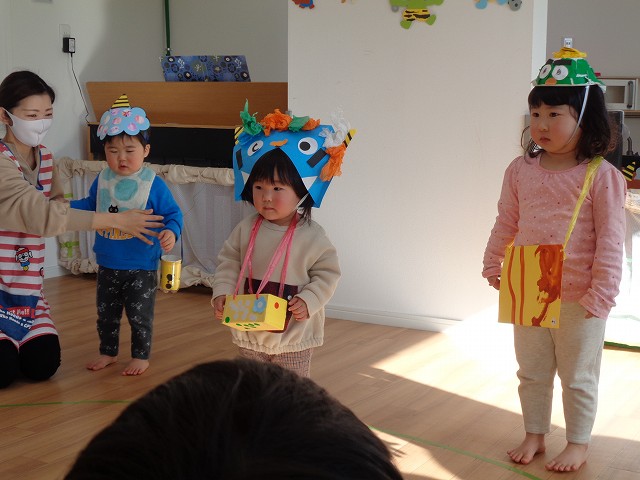 クラスで作った”お面”と”豆入れ”の紹介もしてもらいましたよ。