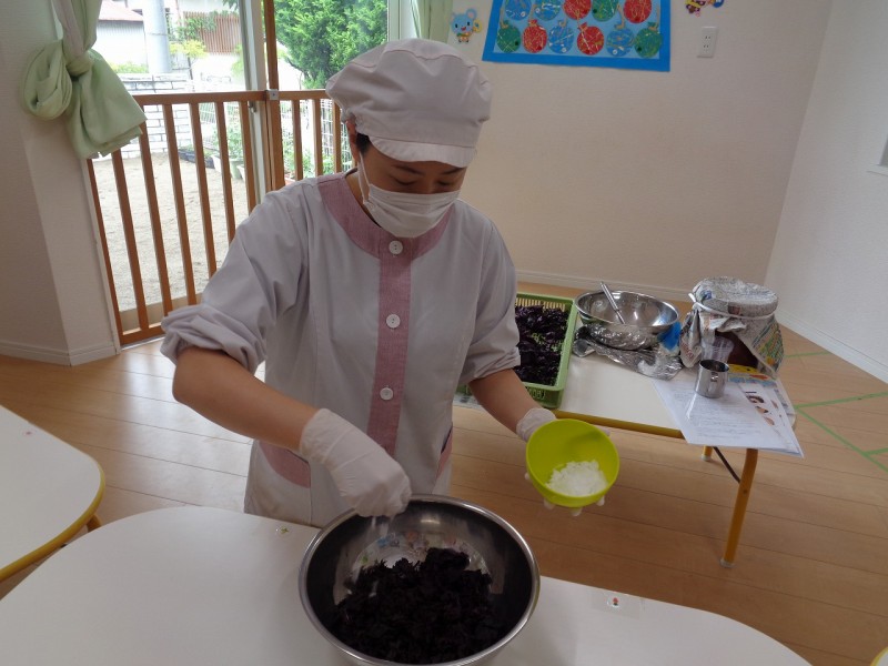 最終日の3日目は赤しそのアク抜きから行いました😃