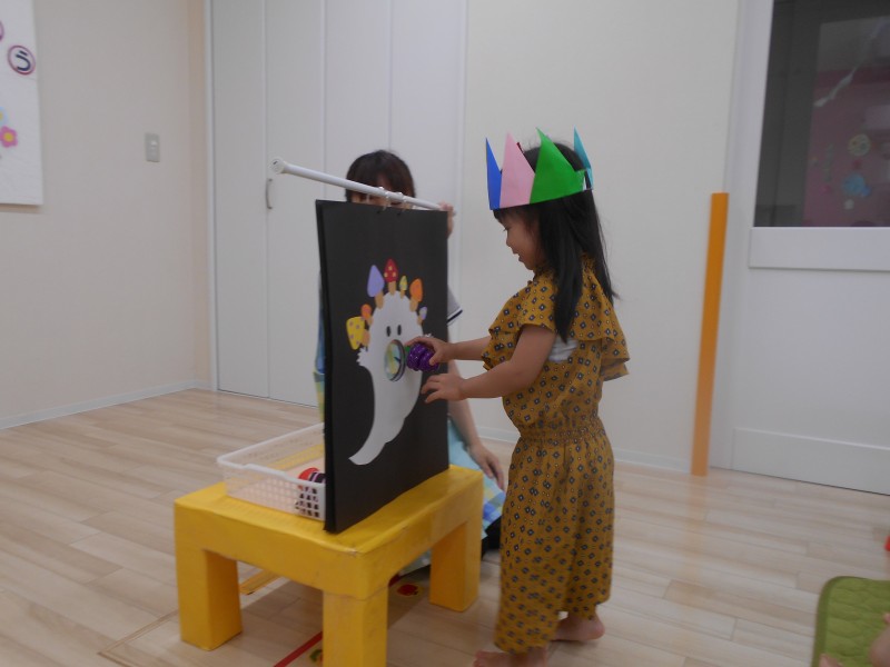ばけたくんにいちごやきのこを食べさせています!!「やりたーい!」と大人気のばけたくんでした