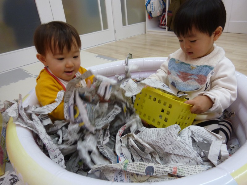 泣きながらも新聞の豆を投げることが出来ました!