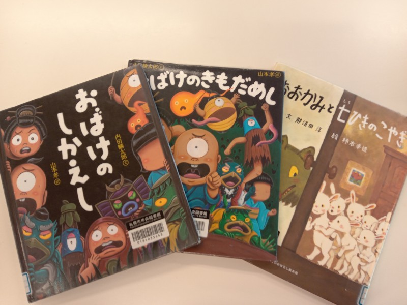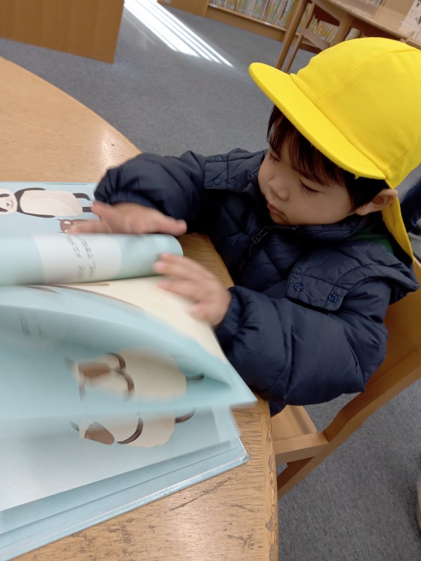 図書館では好きな絵本をそれぞれ借りて読みました。