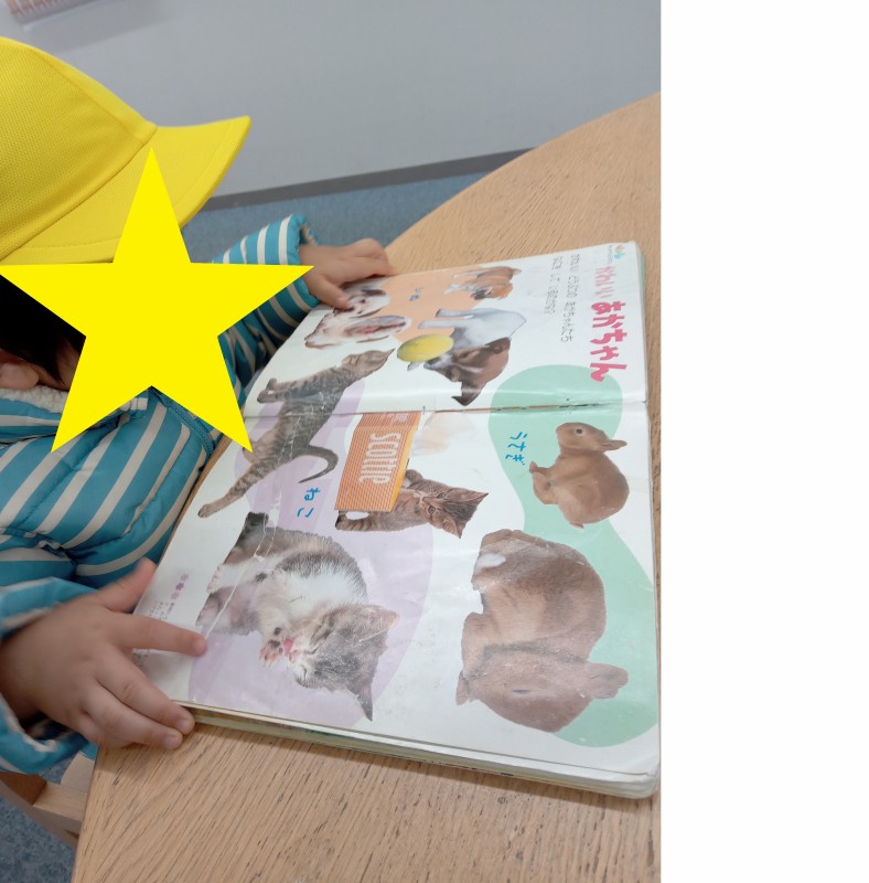 園で待っているお友だちに本を借りてきてくれました。