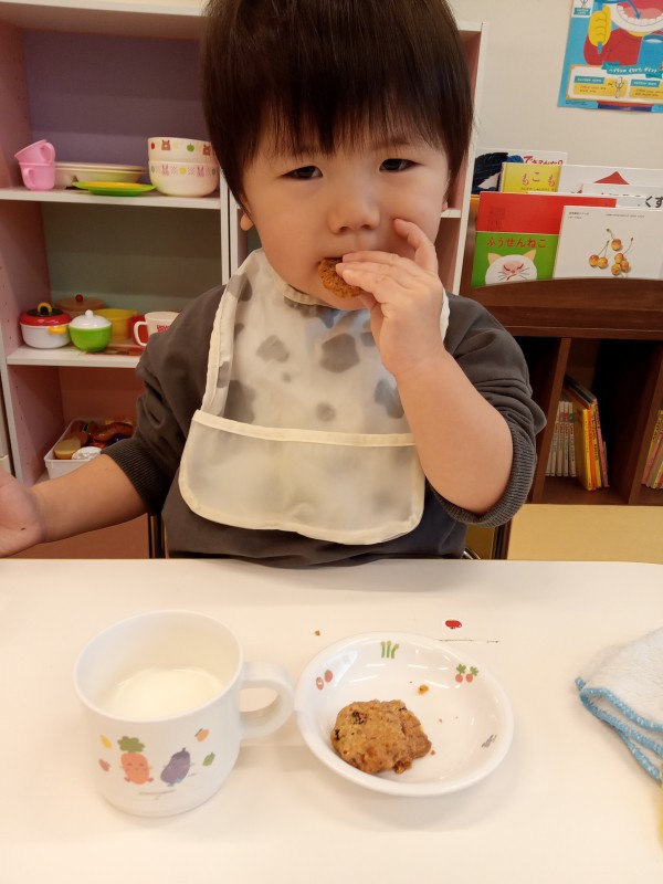 この日の午後のおやつは、牛乳・コーンフレーククッキーでした。