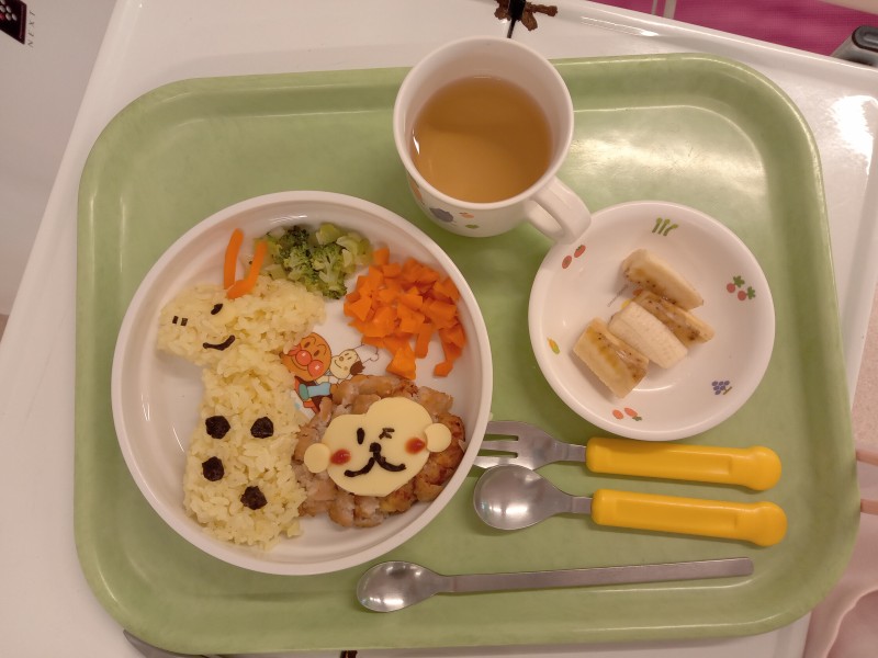 メニューはキリンごはん・おさるハンバーグ・にんじんうさぎ・バナナ