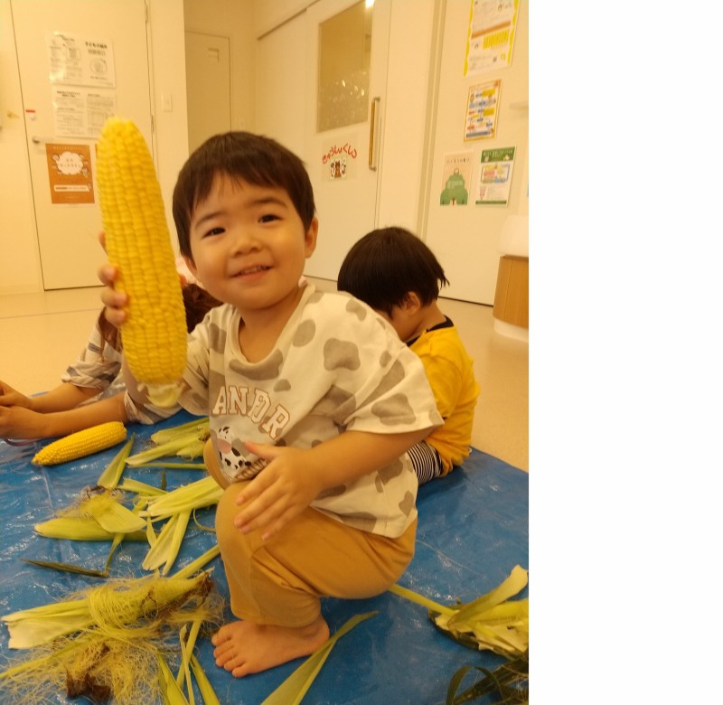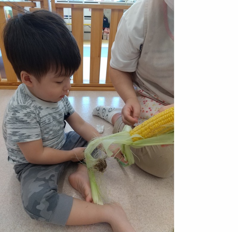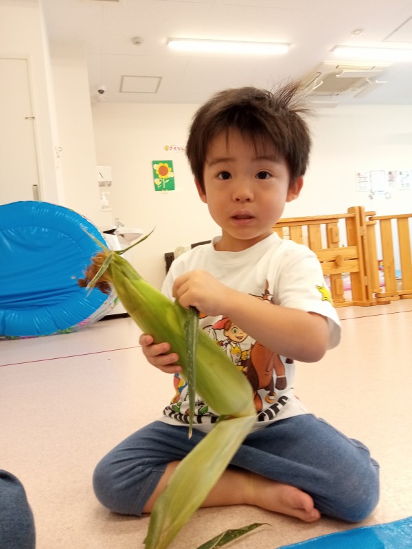 夏にはとうもろこしの皮むきにも挑戦しました。