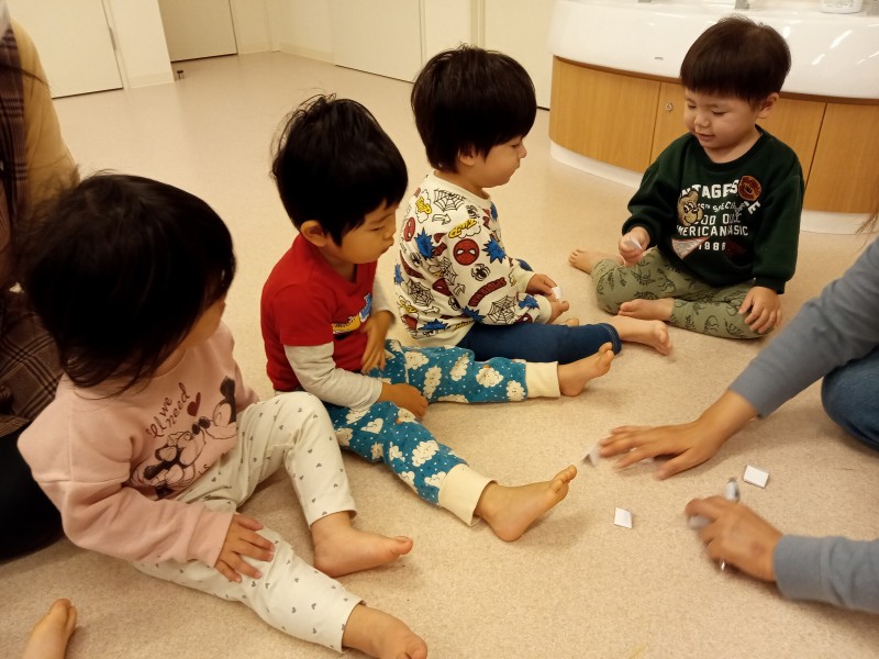 いつも見慣れた保育園のはずなのに、なんだかちょっぴり緊張気味の子ども達😁