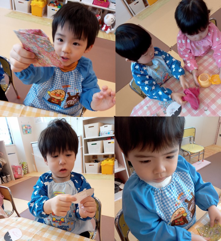 園では、折り紙を使っておひなさまの制作を楽しみました。