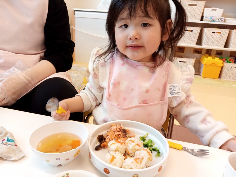 お花の形のちらしご飯をみて、「かわいい~💕」を連呼する子どもたちでした。