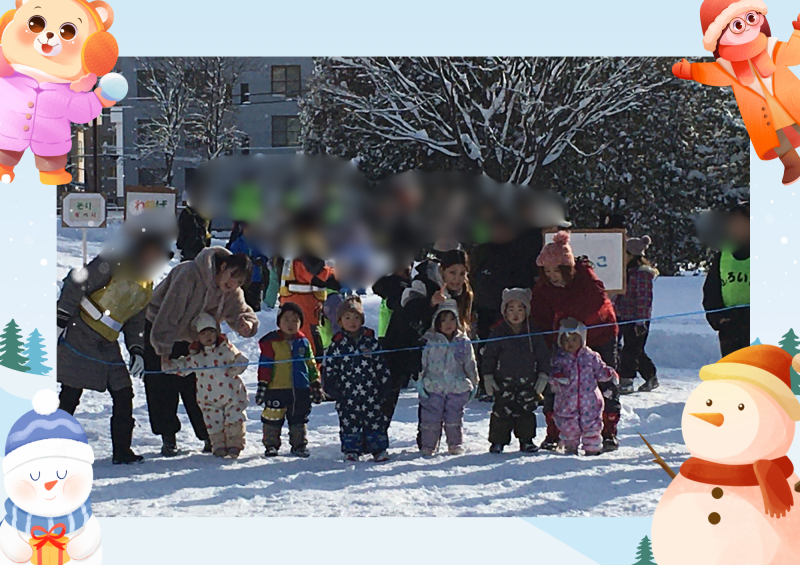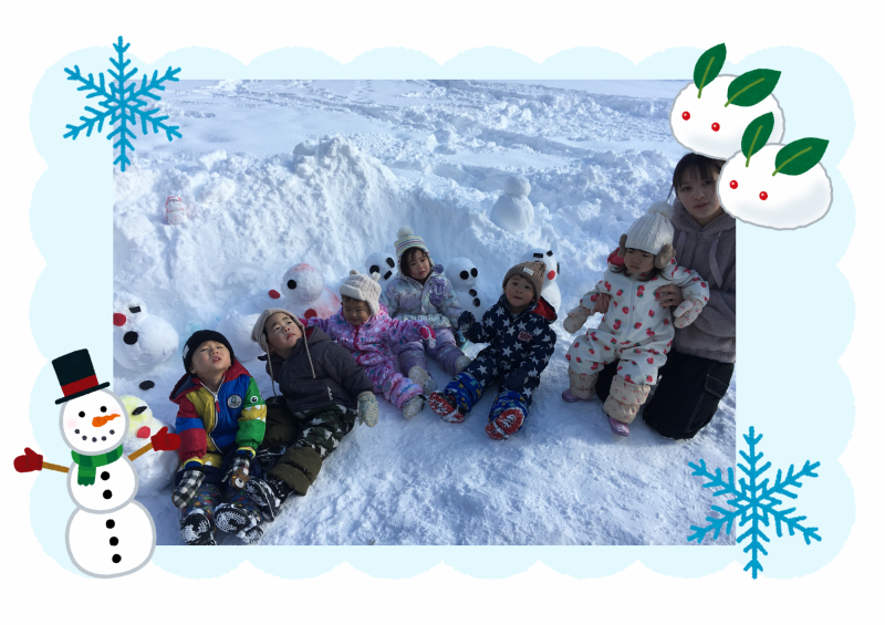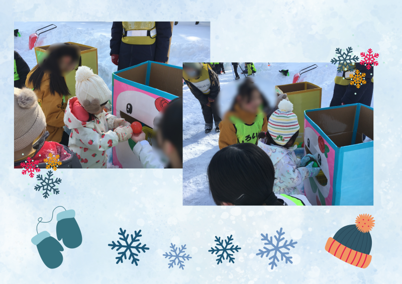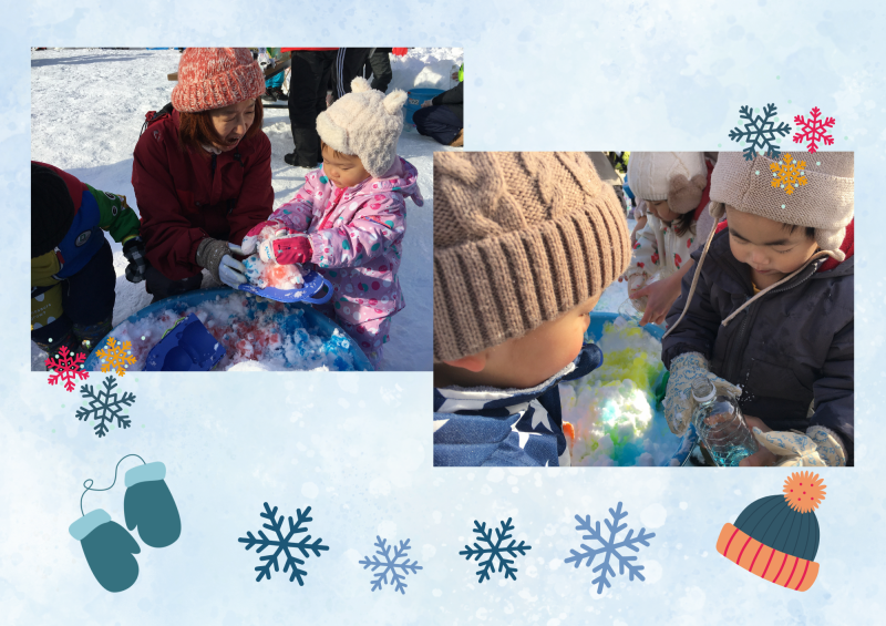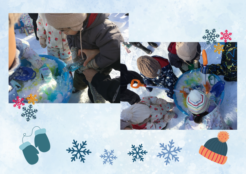 みんなで色水(色雪)あそびをしたり、たくさんの雪だるまさんたちと記念撮影📸