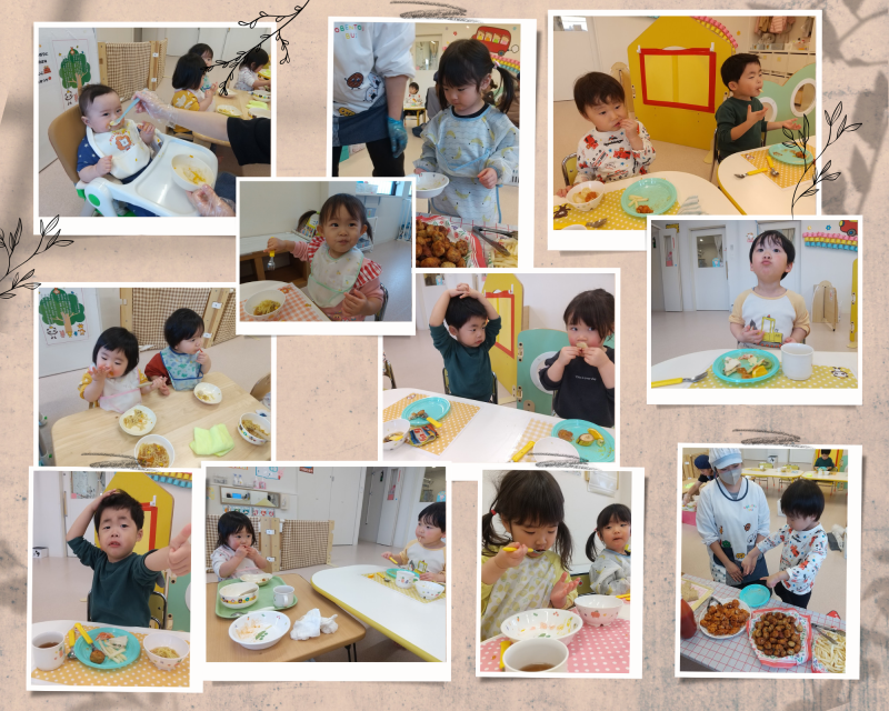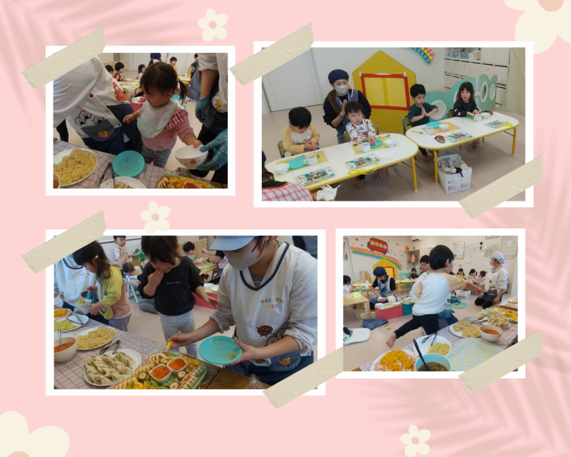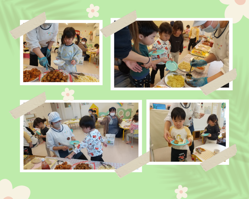 今日は事前にうさぎ組さんが選んでくれた好きな給食をバイキング形式でみんなで食べました!