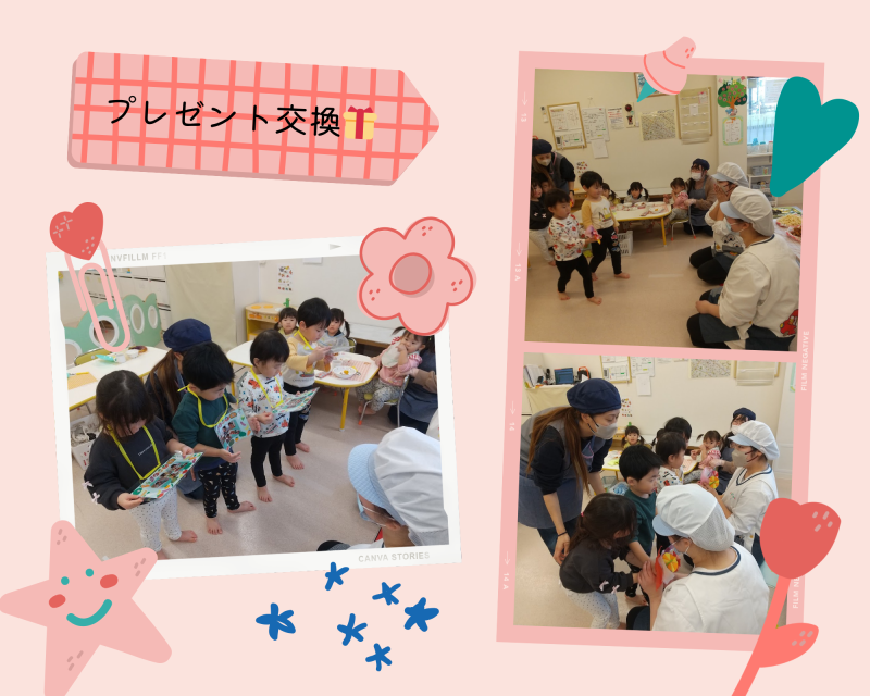 栄養士と調理員から毎日いっぱい給食をおいしく食べてくれたうさぎ組さんにプレゼントを渡しました🎁