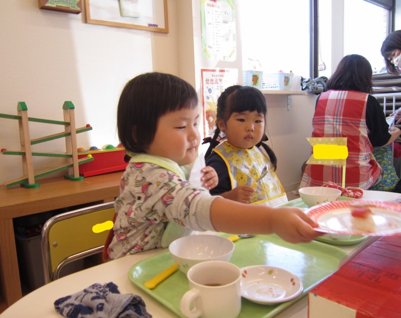 午睡明けはお誕生さんにみんなでお歌のプレゼントをしながら、かわいいケーキを頂きました🍰