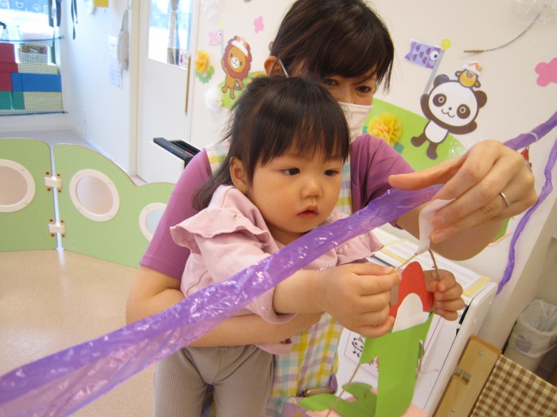 保育室にぶら下げて、「ふぅ~~~」と息を吹きかけ揺らしたり、おててでユラユラさせたり…