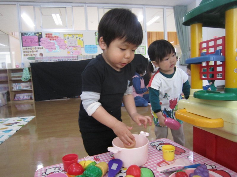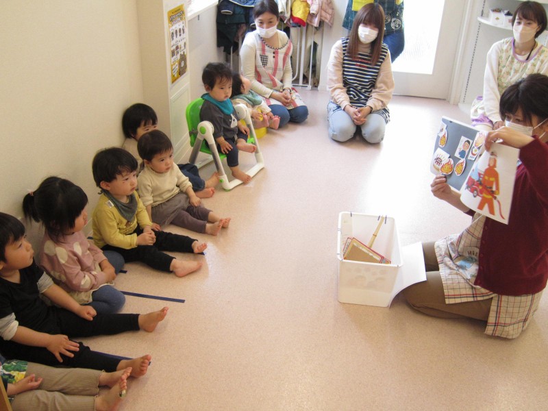 答えが分かったお友だちが「カエル!!」と言うと、みんなも真似をしてカエルになりきる場面も![]()