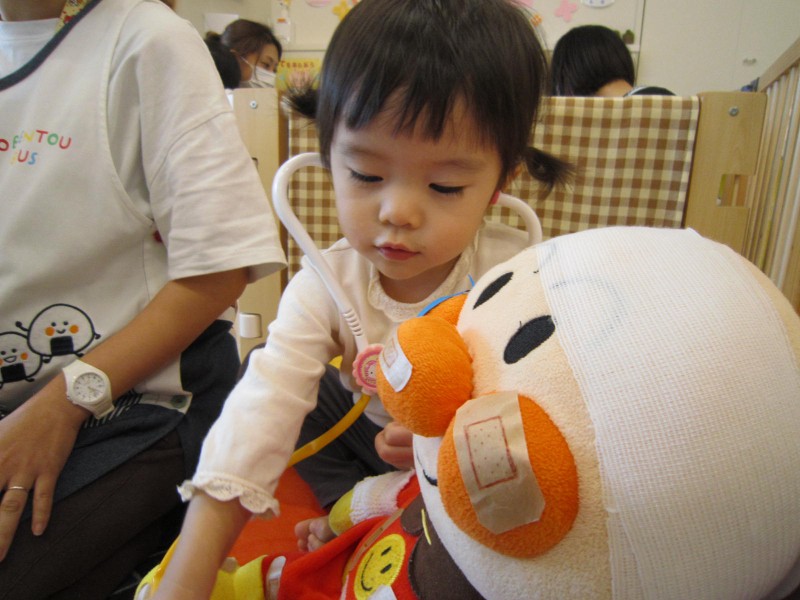 可愛いちびっ子ドクター達が熱心にケガしたお人形の診察にあたってくれていましたよ😚
