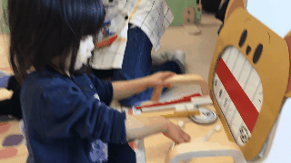 お話を聞いた後は、歯医者さんコーナーを用意して遊びました。