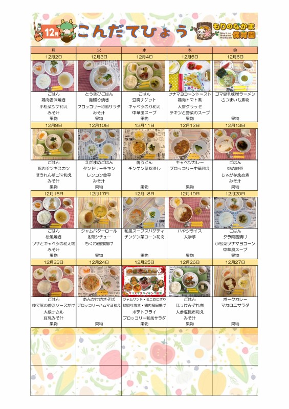 🍙12月の給食こんだて🍙